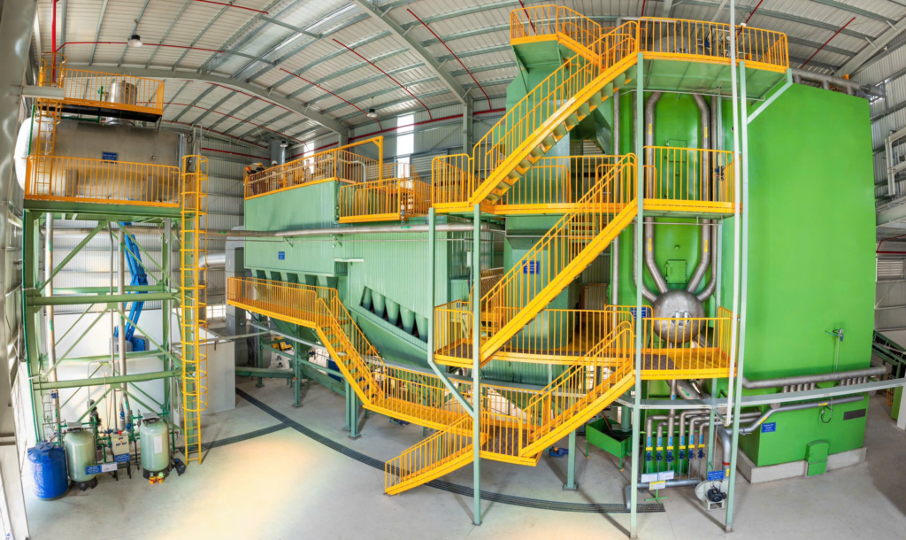 SUNSCO べトナムでは、持続可能な社会の実現に向けた脱炭素経営を推進しています。その取り組みの一環として、従来のLPGボイラーを環境負荷の低いバイオマスボイラーへ刷新し、2026年2月より本格稼働を開始しました。