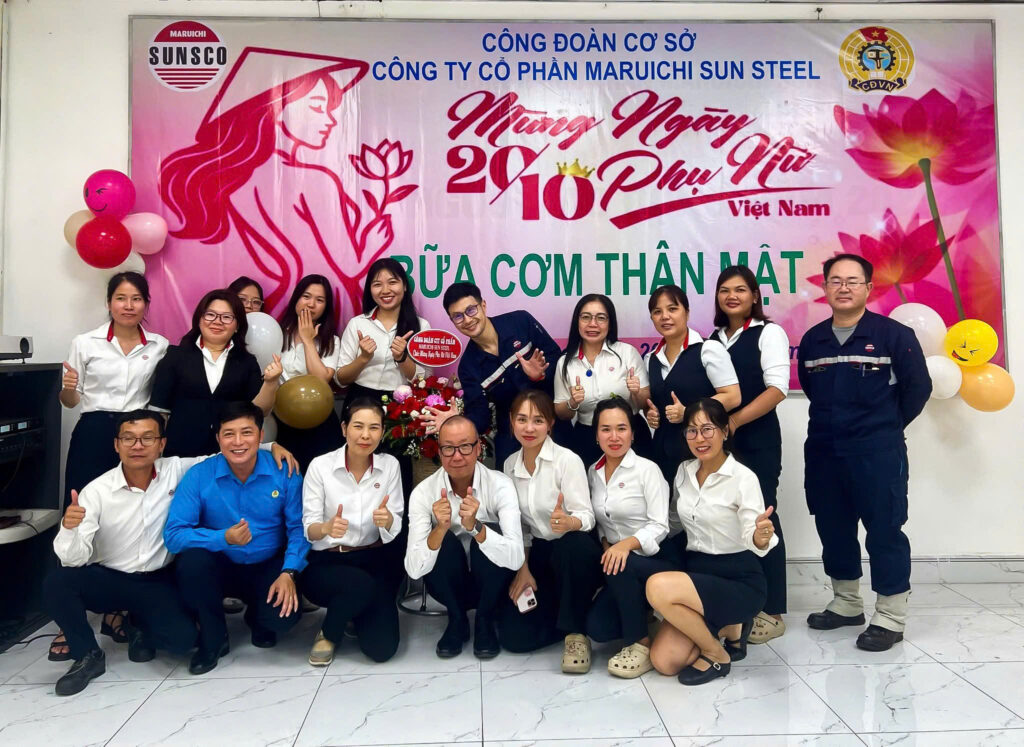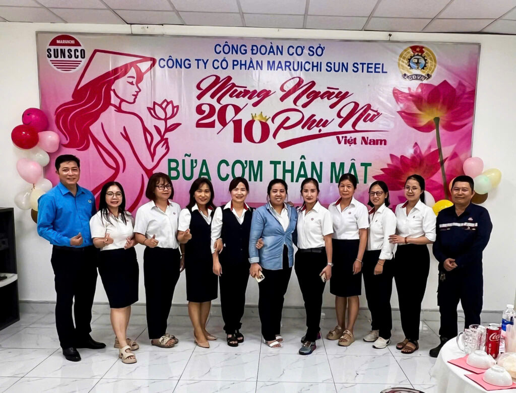On the occasion of Vietnamese Women’s Day (20/10), the grassroots Trade Union of Maruichi Sun Steel organized a warm and friendly luncheon for all female employees of the company. The event was attended by the Trade Union Executive Committee, the Board of Directors, and department managers.