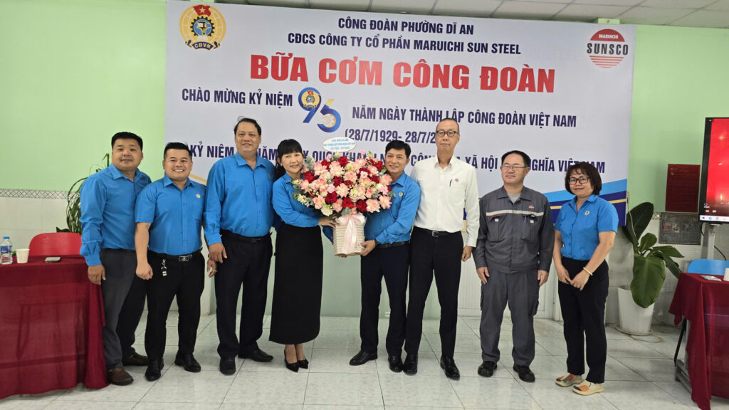 Nhân dịp kỷ niệm 96 năm ngày thành lập Công đoàn Việt Nam (28/7/1929 – 28/7/2025), vào trưa ngày 28/7/2025, Ban Chấp hành Công đoàn cơ sở Công ty Cổ Phần Maruichi Sun Steel đã tổ chức một bữa ăn trưa đặc biệt dành cho toàn thể cán bộ, công nhân viên trong công ty.